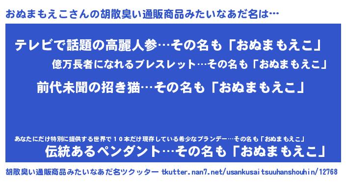 | 肩書あだ名 | 『おぬまもえこ先生』『おぬまもえこ閣下』 |