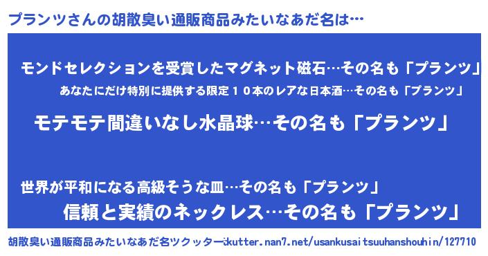 | ヘコむあだ名 | 『プラふぇ~』『プラ太郎』 |