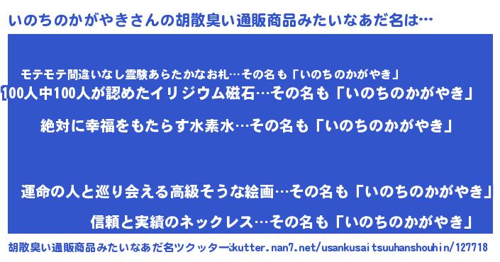 | 意味不明あだ名 | 『永久保存いのちのかがやき』 |