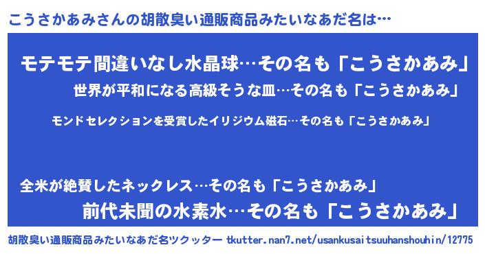 | ヘコむあだ名 | 『こうにゅー』『こうさかあみ(爆)』 |