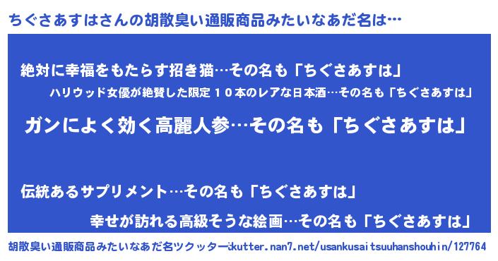 | ヘコむあだ名 | 『ちぐさあすは(笑)』『豆乳』 |