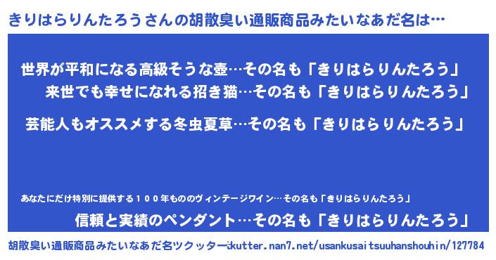 | 意味不明あだ名 | 『自称きりはらりんたろう』 |
