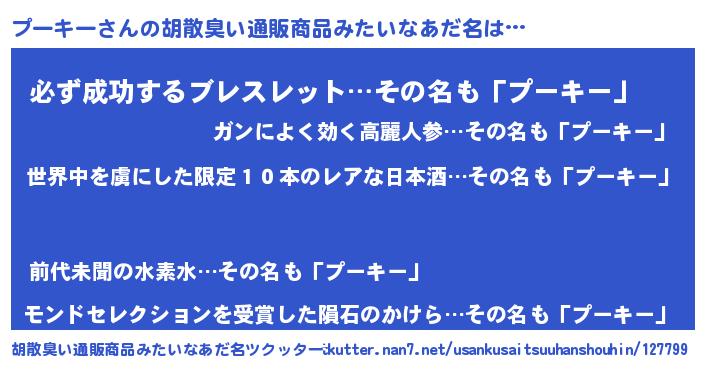 | 意味不明あだ名 | 『なめこ科プーキー属』『自称プーキー』 |