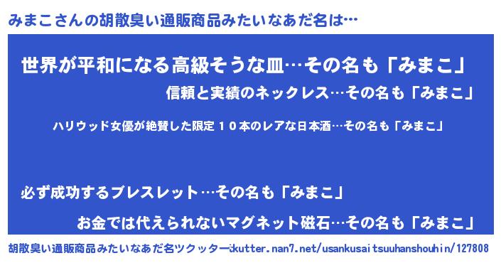 | 意味不明あだ名 | 『住所不定無職みまこ(39歳)』 |