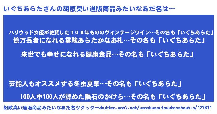 | ヘコむあだ名 | 『いぐちあらた(爆)』『いぐふぇ~』 |