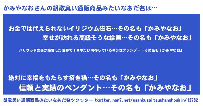 | 意味不明あだ名 | 『住所不定無職かみやなお(91歳)』 |