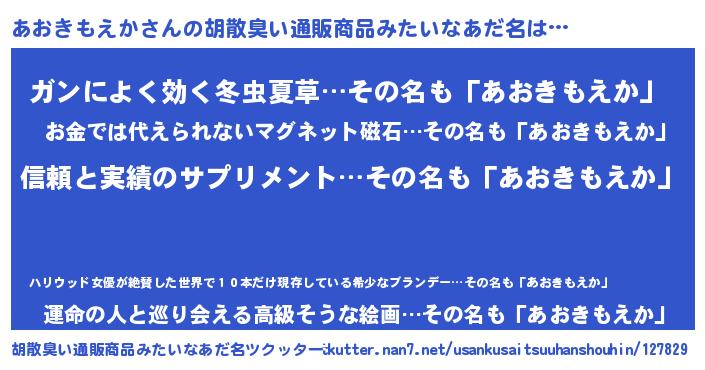 あおきもえかさんの胡散臭い通販商品みたいなあだ名をツクッター!