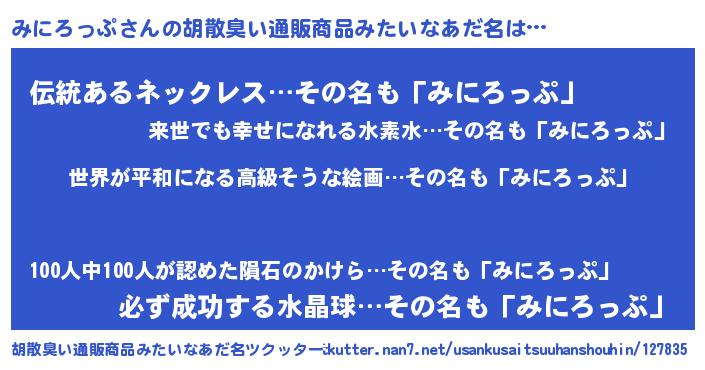 | 意味不明あだ名 | 『みにろっぷフォーエバー』 |