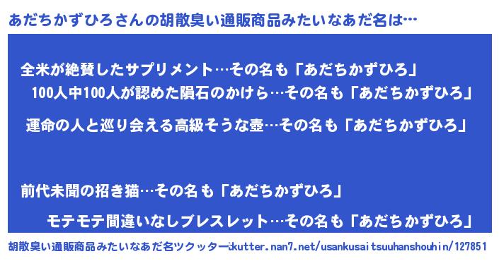 | ポケモン風あだ名 | 『アダチダネ』『ヒアダチカズヒロ』 |