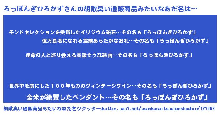 | 意味不明あだ名 | 『ろっぽんぎひろかずフォーエバー』 |