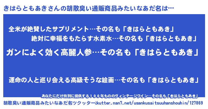 きはらともあきさんの胡散臭い通販商品みたいなあだ名をツクッター!