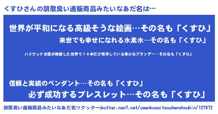 | 意味不明あだ名 | 『住所不定無職くすひ(84歳)』 |