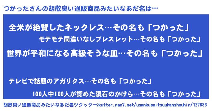 | ヒーロー風カッコイイあだ名 | 『ウルトラつかったマン』『天弓騎士ツカ』 |