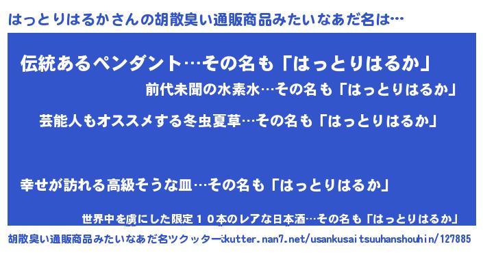 | 意味不明あだ名 | 『自称はっとりはるか』 |