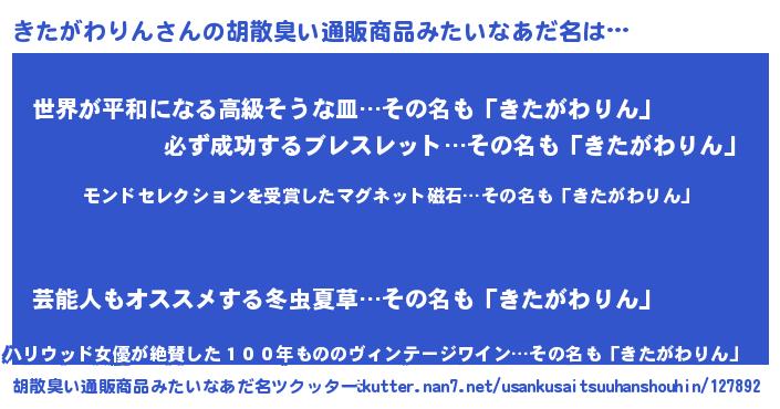 | 男性向けラノベタイトル風あだ名 | 『ノーゲーム・ノーキタガワリン』 |