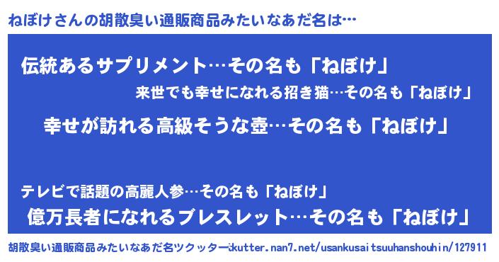 | ヘコむあだ名 | 『牛乳』『ねぼお』『ねぼっふぃ~』 |
