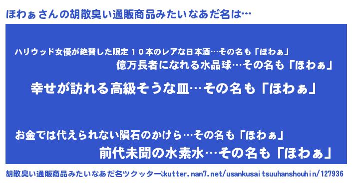 | ヒーロー風カッコイイあだ名 | 『ウルトラほわぁマン』『仮面ホワダー』 |