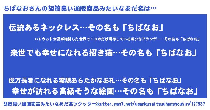| ヒーロー風カッコイイあだ名 | 『ネオチバナオ』『魔戒騎士チバ』 |