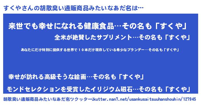 | ヘコむあだ名 | 『すくや(遠い目)』『すくっ子』 |