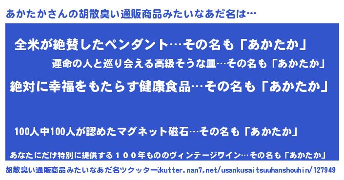 | 意味不明あだ名 | 『永久保存あかたか』 |