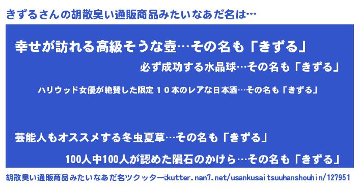 | 意味不明あだ名 | 『住所不定無職きずる(41歳)』 |