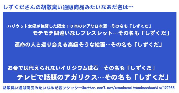 | 恥ずかしいあだ名 | 『しずっちょ』『シズクダデラックス』 |