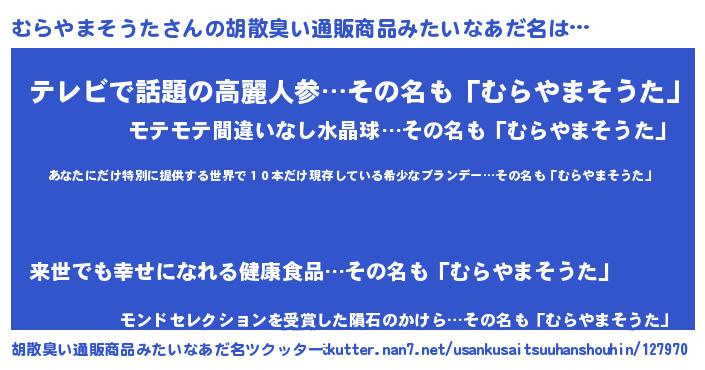 | ヘコむあだ名 | 『むらもー』『むらやまそうた(笑)』 |