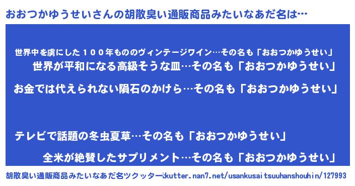 | 男性向けラノベタイトル風あだ名 | 『ノーゲーム・ノーオオツカユウセイ』 |
