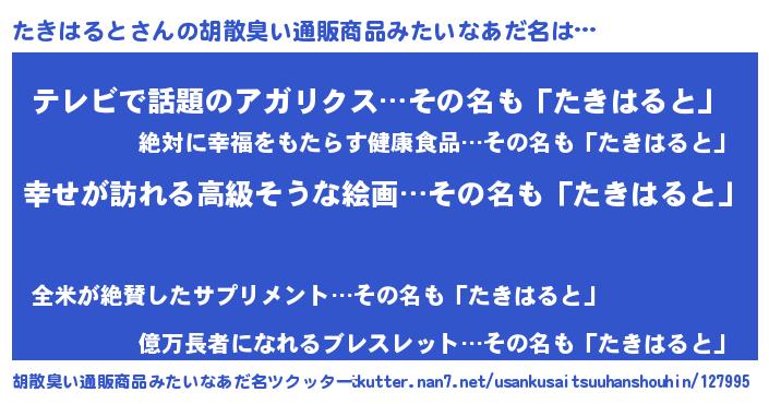 | 肩書あだ名 | 『たきはると総理大臣』『たきはると総統』 |