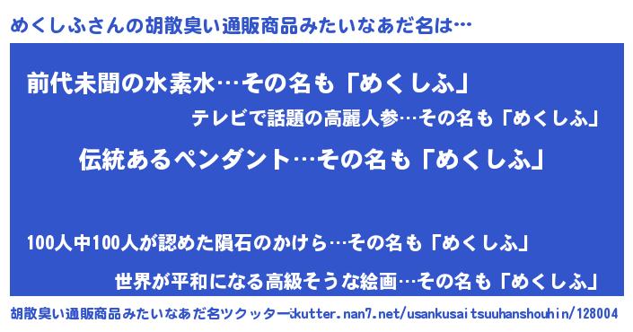 | 男性向けラノベタイトル風あだ名 | 『めくしふの嫁は女の子じゃないと思った?』 |