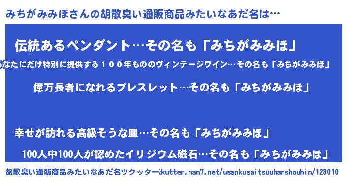 | 欧米人風あだ名 | 『マイケルみちがみみほ』 |
