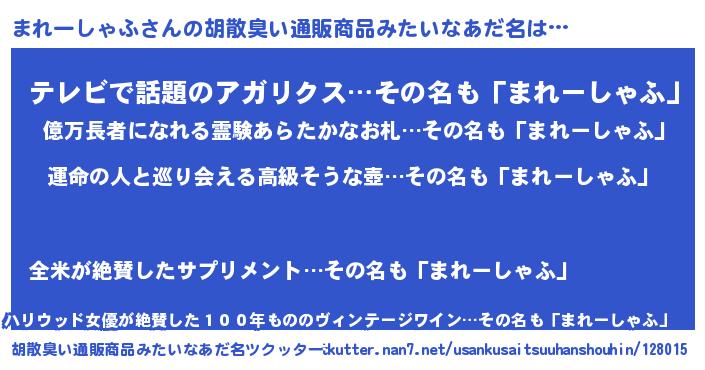 | 欧米人風あだ名 | 『アンジェラ・まれーしゃふ』 |