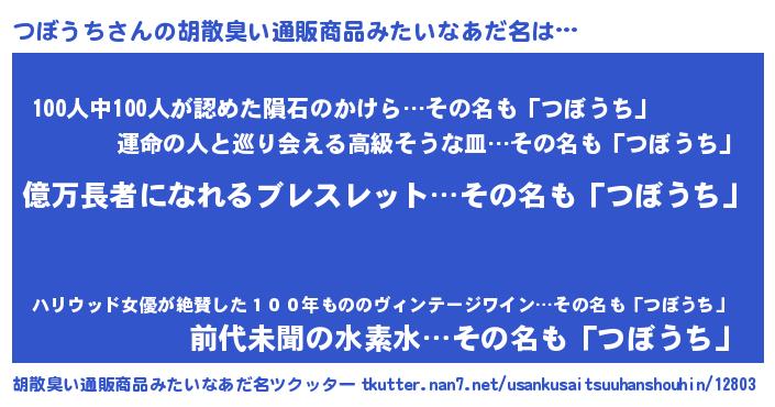 | 女子向けラノベタイトル風あだ名 | 『つぼうちの玉の輿計画!』 |