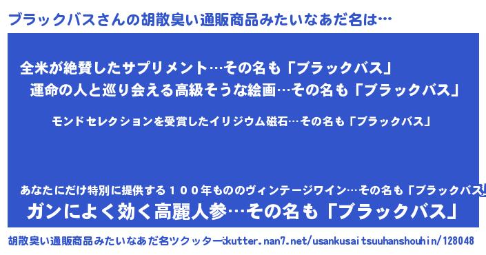 | ヒーロー風カッコイイあだ名 | 『慈愛の使者ブラックバス』 |