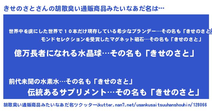 | ヘコむあだ名 | 『きせにゅー』『きせぷりん』 |