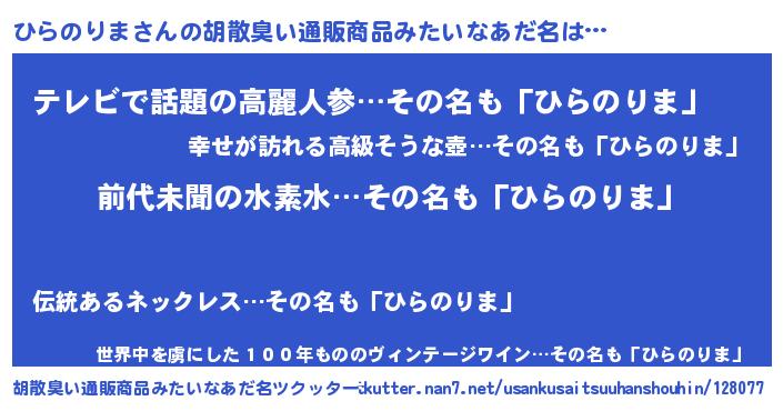 ひらのりまさんの胡散臭い通販商品みたいなあだ名をツクッター!