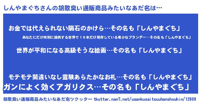 | 意味不明あだ名 | 『しんやまぐちフォーエバー』 |