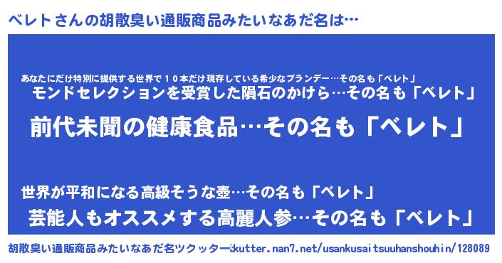 | ポケモン風あだ名 | 『ゼニベレ』『ベレゴンZ』『ベーレイ』 |