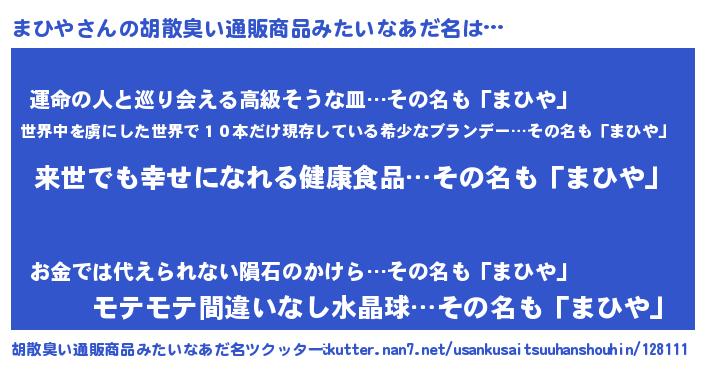 | ヒーロー風カッコイイあだ名 | 『ネオマヒヤ』『ウルトラまひやマン』 |