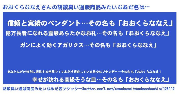 おおくらななえさんの胡散臭い通販商品みたいなあだ名をツクッター!