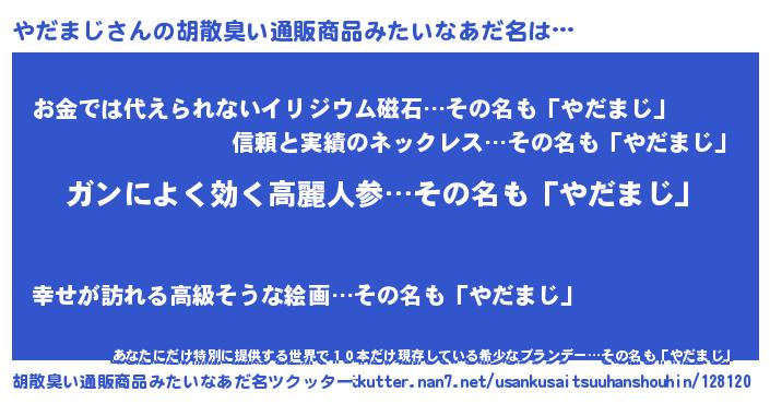 | 意味不明あだ名 | 『自称やだまじ』『やだまじフォーエバー』 |