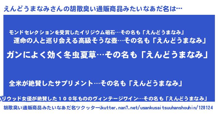 | 意味不明あだ名 | 『自称えんどうまなみ』 |