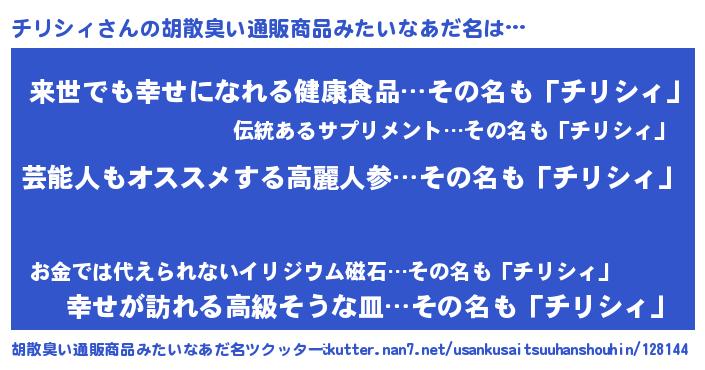 | ヘコむあだ名 | 『チリシィ(笑)』『豆乳』『チリにー』 |