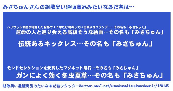 | 意味不明あだ名 | 『とにかく怪しいみさちゅん』 |
