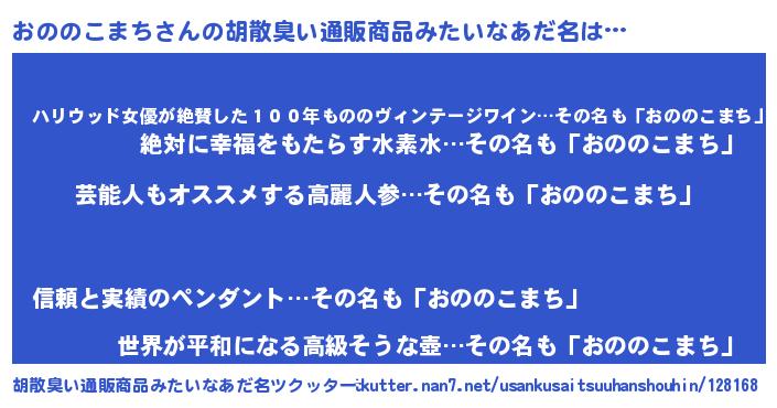 おののこまちさんの胡散臭い通販商品みたいなあだ名をツクッター!