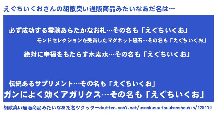 | 恥ずかしいあだ名 | 『えぐちん』『プリティーえぐちいくお』 |