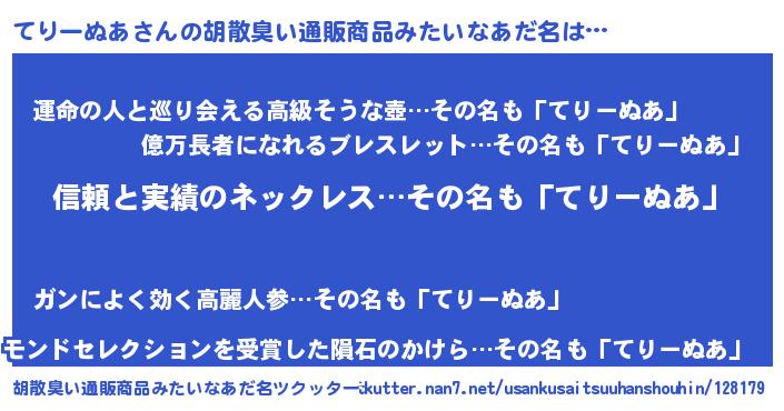 | 意味不明あだ名 | 『とにかく怪しいてりーぬあ』 |