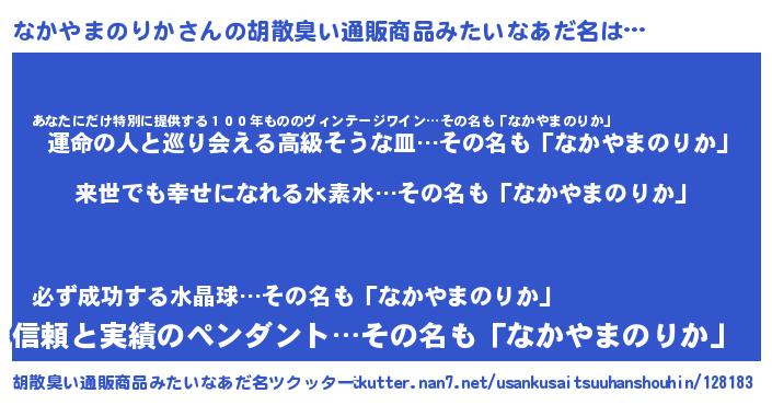 | ヒーロー風カッコイイあだ名 | 『ネオナカヤマノリカ』『仮面ナカダー』 |