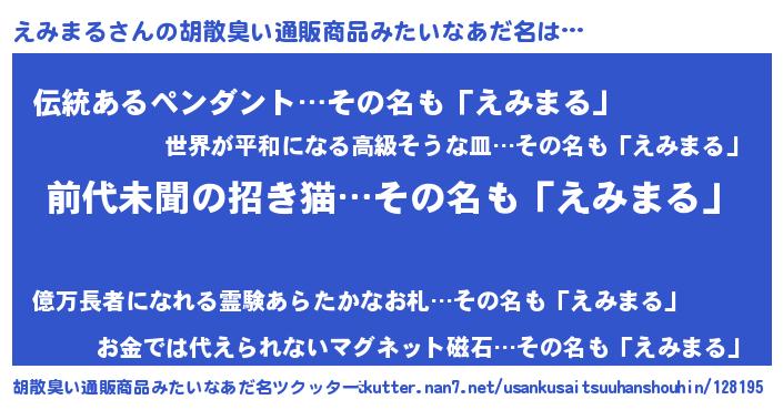 | 意味不明あだ名 | 『永久保存えみまる』『ペロリンえみまる』 |