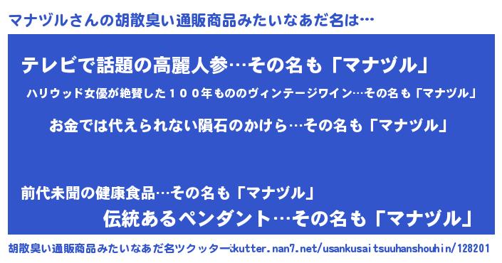 | ヘコむあだ名 | 『マナっぺ』『マナヅル(笑)』 |